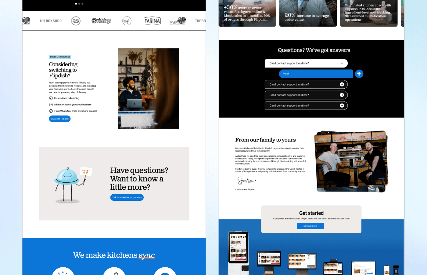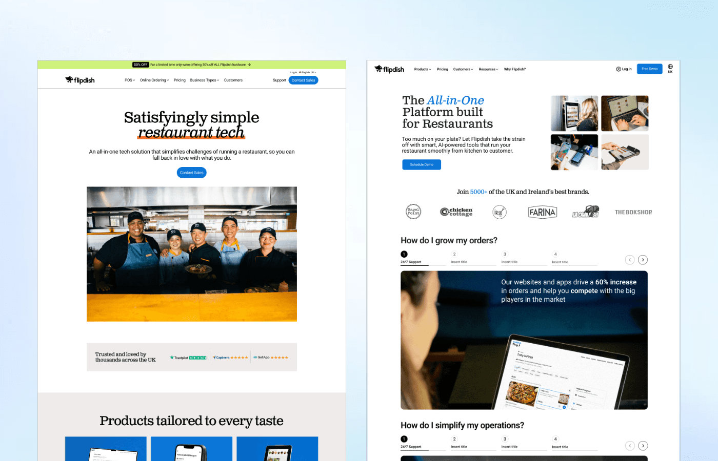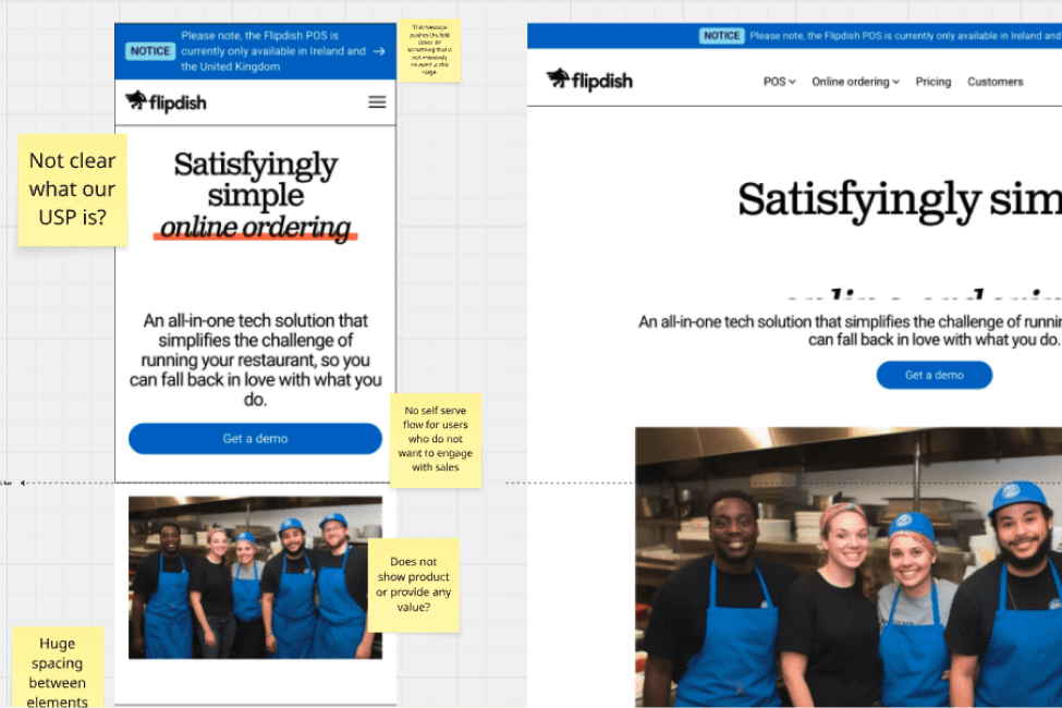 Using the insights gathered I worked collaboratively with marketing and tech teams to prototype multiple routes for our new marketing site. Through multiple requirements and feedback gathering sessions we were able to arrive at a successful solution. Which went on to drive significant business impact. Before: Left, After: Right